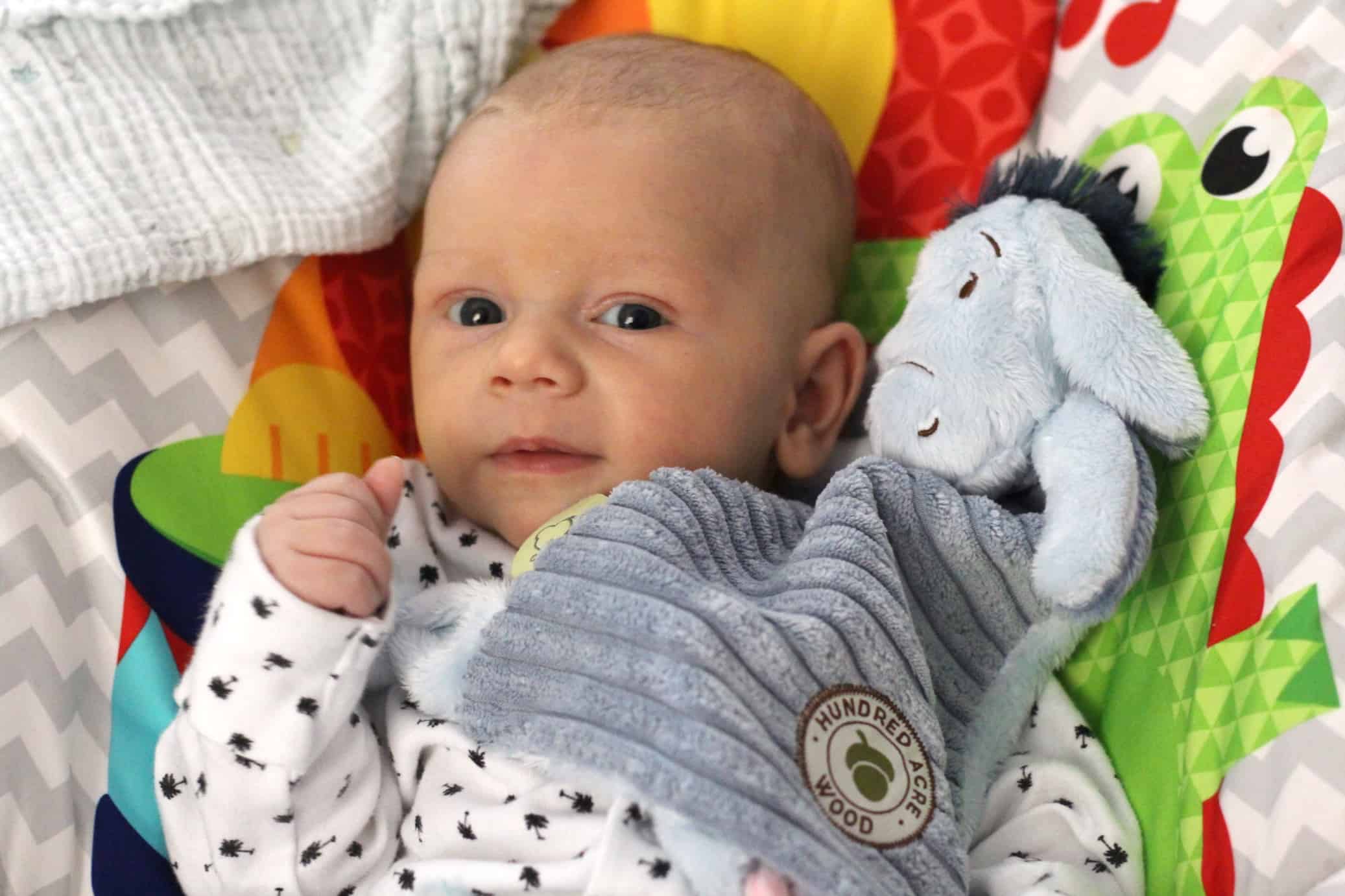 Hugo has just started to grasp things for a purpose and when he is going to sleep he gets great comfort from grasping a blanket or soft toy. The Rainbow Designs Eeyore Comforter is the perfect size and material for Hugo’s small hands! It’s super soft and cosy perfect for a small baby to cuddle for comfort. When Hugo is feeling tired he will hold the comforter and gently fall to sleep. If he is upset or grizzly I will gently stroke his face with the comforter which instantly calms him down. I can see this becoming a favourite item for Hugo that he will treasure as he grows up.