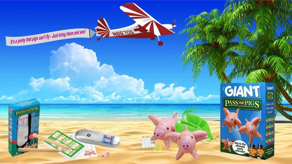 Pass the Pigs, love having fun on the road no matter the location. Available in the original Pass the Pigs game, which comes in a handy travel case, or the inflatable Giant Pass the Pigs, they are easy to pack and bring along anywhere.