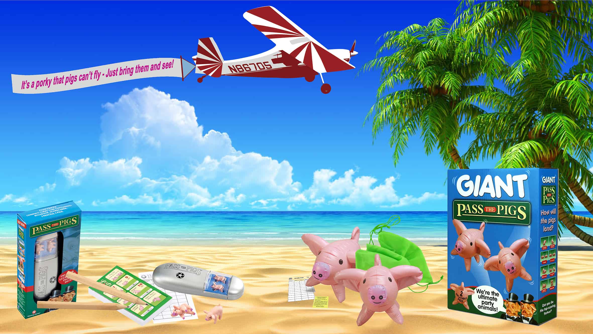 - The classic party game Pass The Pigs goes SUPER-SIZE. Perfect for parties, these giant inflatable pigs can bounce around the garden, house, beach or even the pool. It’s Pass The Pigs but like you’ve never passed them before!