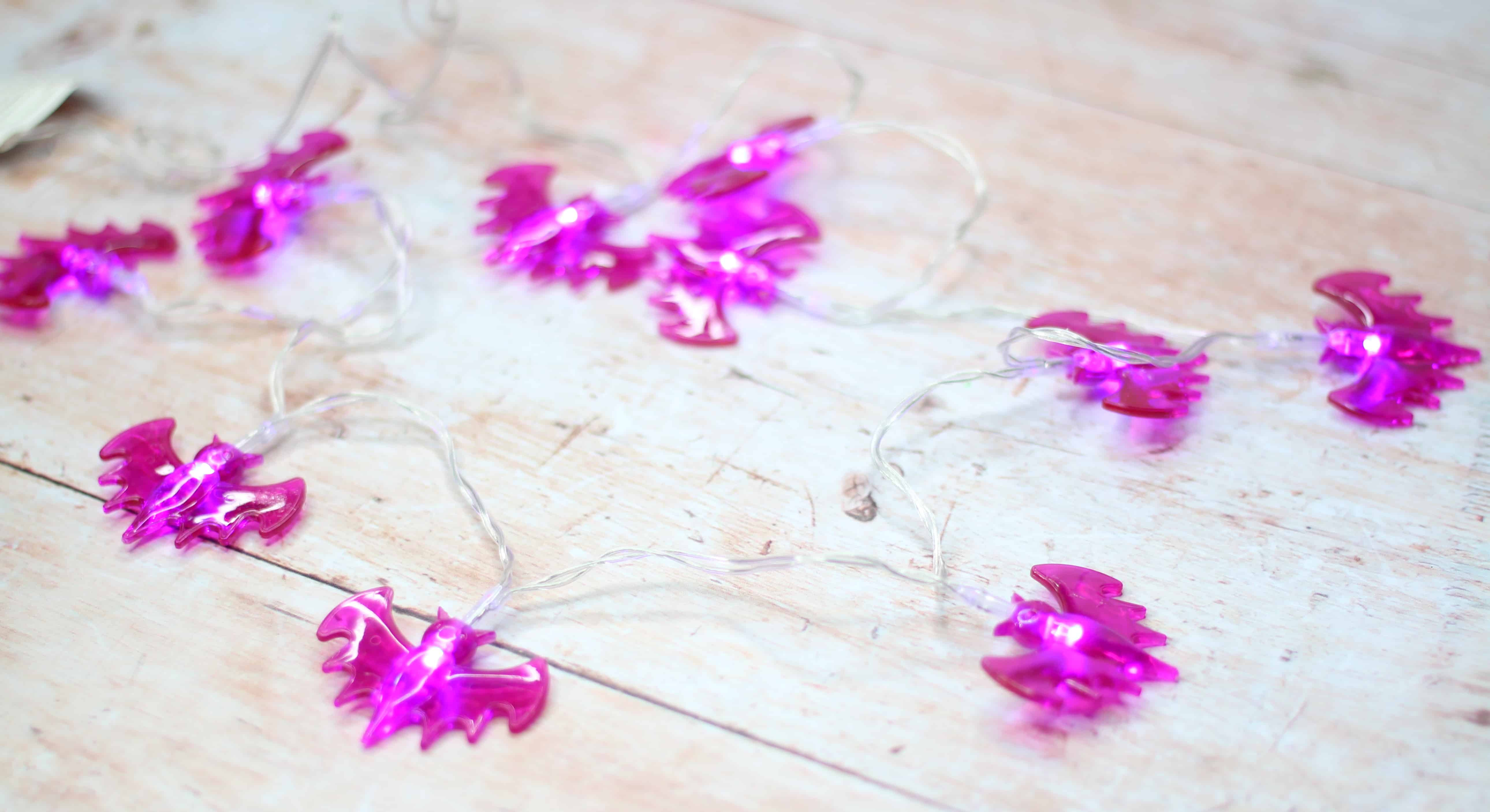 I love these battery-operated Halloween string lights! They make the perfect addition to a porch entrance or as a party decoration! They simply take 2xAA batteries (not included) making them portable and easy to use.