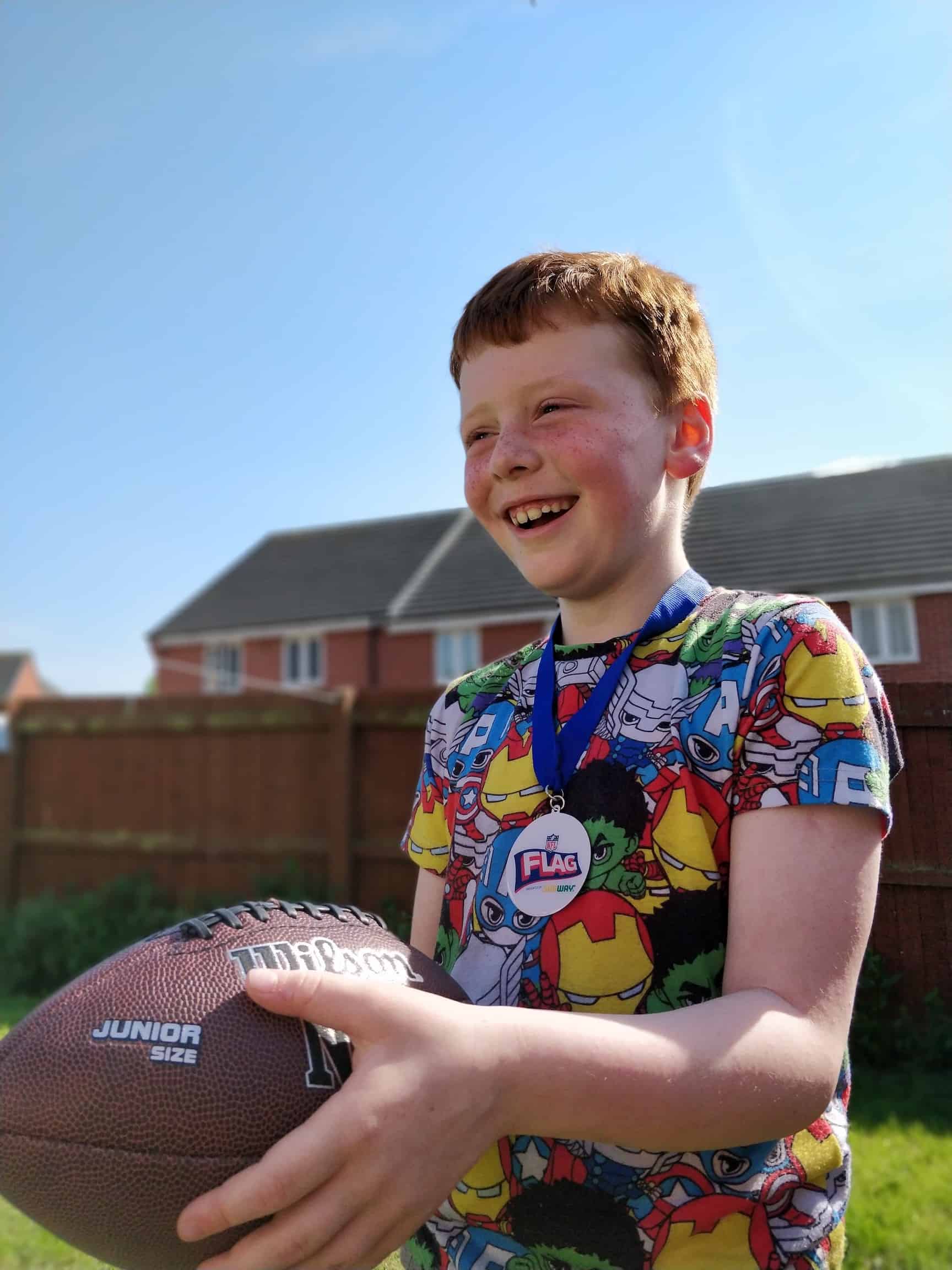 When I got home, I was really thinking about how wonderful the NFL Flag programme is and how thanks to Subway™ they are wanting to roll it out to more and more schools. Henry had a play with one of the balls I brought home and thanks to the NFL team they gave us some exercises to practice at home to get him used to the feel and weight of the ball. It’s entirely different to a basketball or a football and at first it took some getting used to but before long Henry had the hang of things and was throwing and catching the ball around the garden with ease.