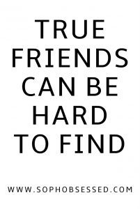 I realise that not everyone is lucky enough to have true friends in their lives. When you do meet a true friend, hold on to them because when your ships sinking they are the ones who will be there to help.