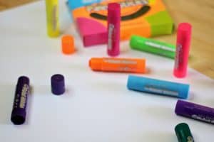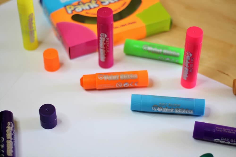 We tested out two packs of Little Brian Paint Sticks. Six of the ‘Day Glow’ and six of the ‘Metallic.’