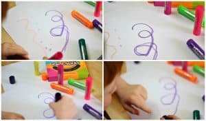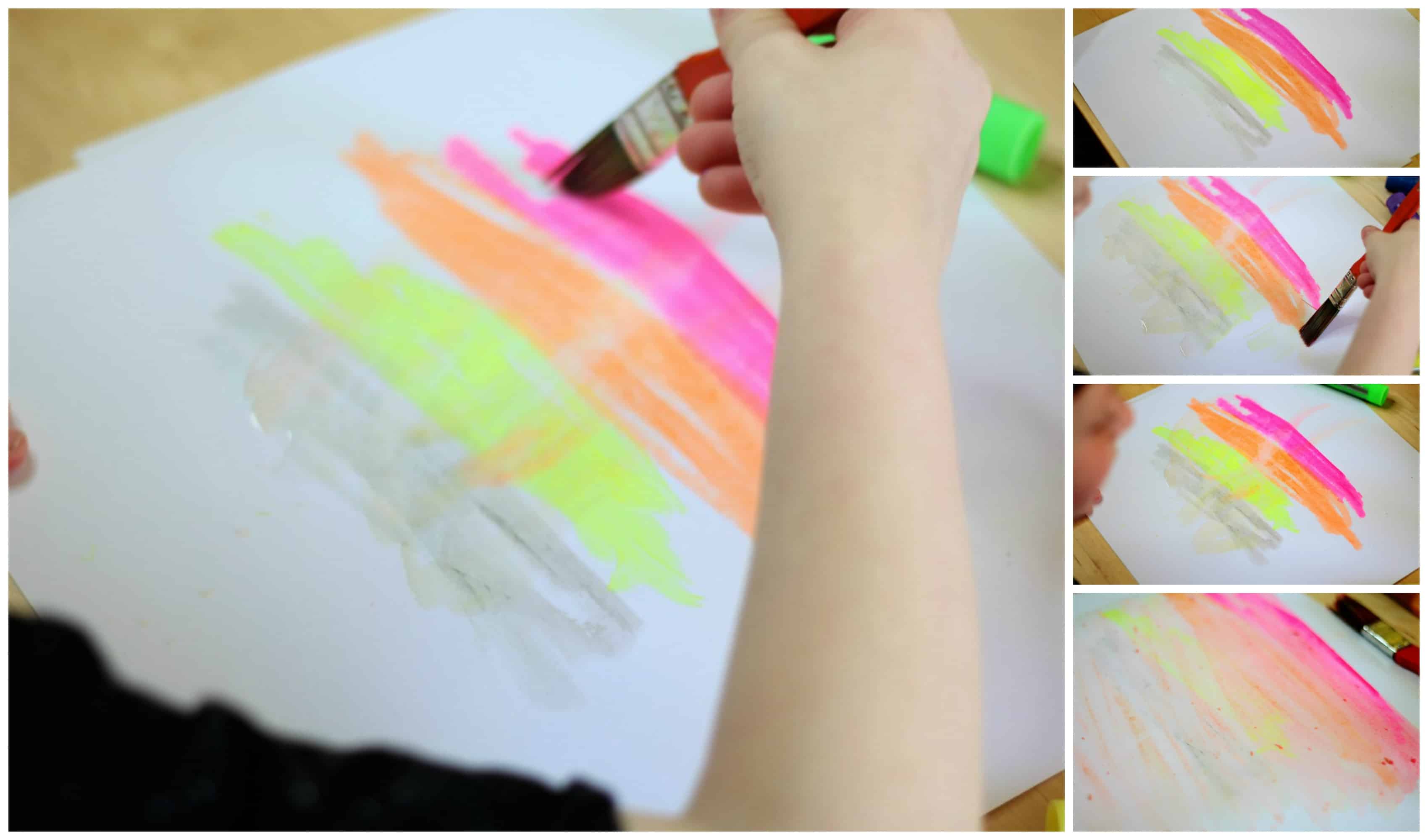 Instantly I was impressed with the colour selection. In both sets the colours are bold and bright, perfect for creating beautiful artwork. The paint sticks work just like a glue stick by twisting the bottom. Each one comes with a cap and is simple and easy for little hands to use and hold. The paint itself has no odor and dries really fast. Far faster than conventional paints! #winning The colours are just as bold on paper as they are in the tube which was refreshing! There is literally no mess. No need for handwashing. No need to renovate my kitchen. Not a ruined piece of clothing in sight! My son literally had a good old paint session but you would have assumed he had used coloured pencils!