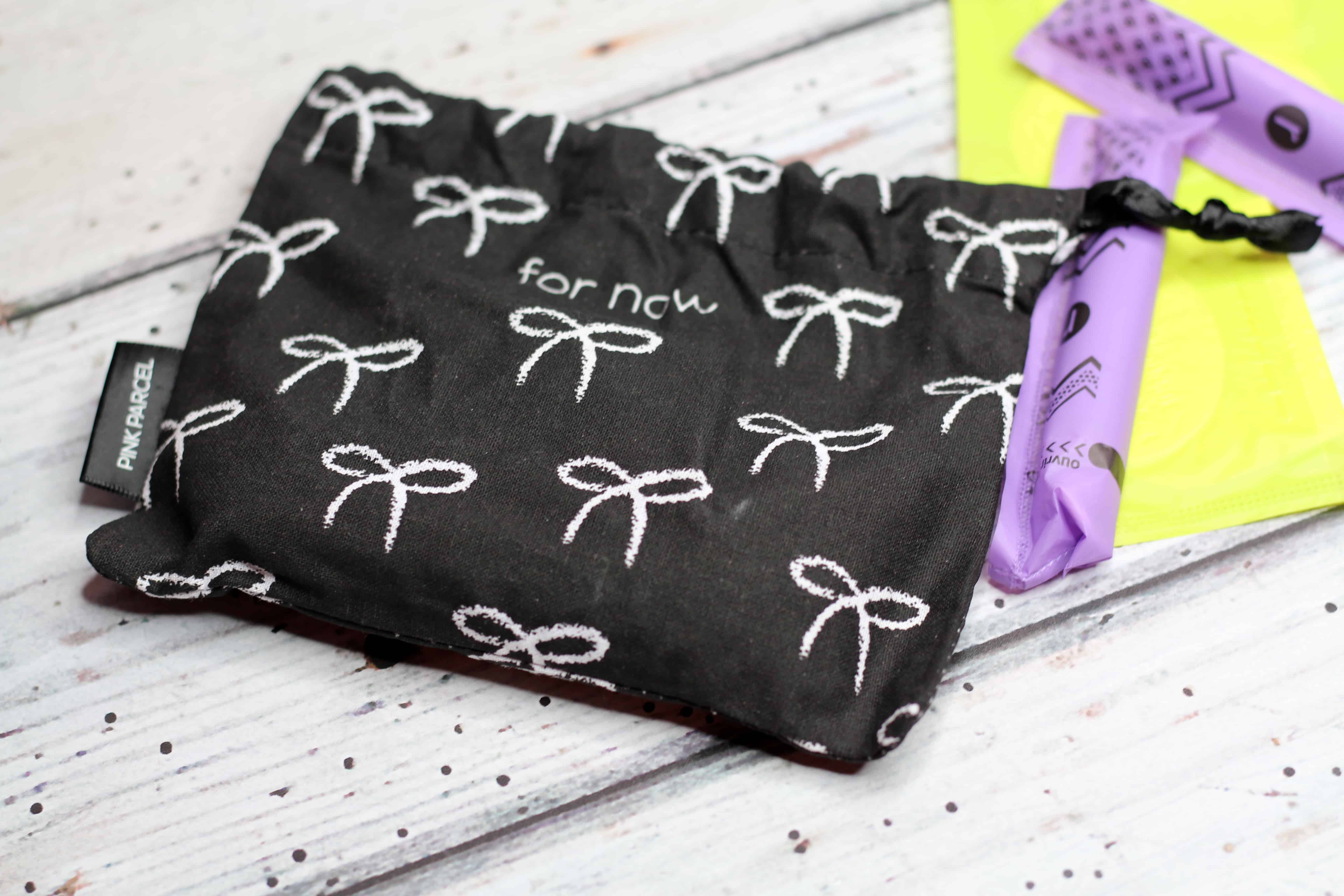 - A discreet ‘For Now’ Pouch filled with sanitary products. This pouch is perfect for discreetly putting in a handbag or school bag to carry your essentials.
