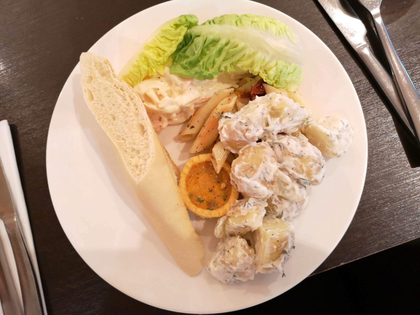 The Brasserie was lovely and had a friendly atmosphere, and although it was busy, we didn’t feel rushed or crowded. Lunch was a self-service buffet featuring an array of salad, bread and quiches. There was also a hot food selection of ratatouille, five bean casserole, sea bream and dauphinoise potatoes. We had a variety of salad and bread first and then went for a plate of hot food. Everything was delicious and full of flavour and even though it was a self-service buffet food wasn’t left out to go stodgy, and it appeared that food was continually coming out fresh.