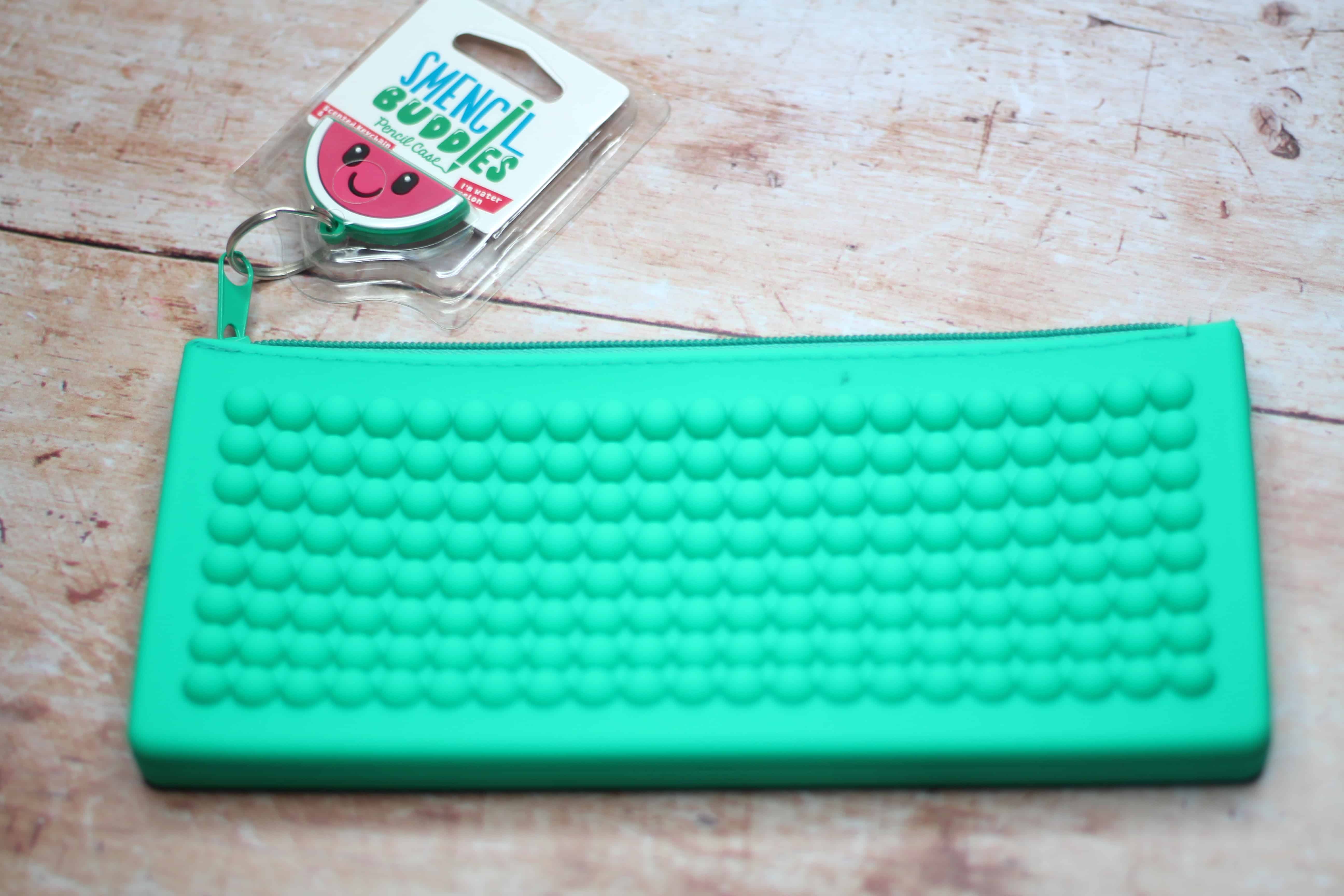 The pencil case is a silicone style material which is a good size and can easily hold the set of coloured pencils and more. Attached is a Smencil Buddy which is scented. There are four different styles to choose from each with their own scent.