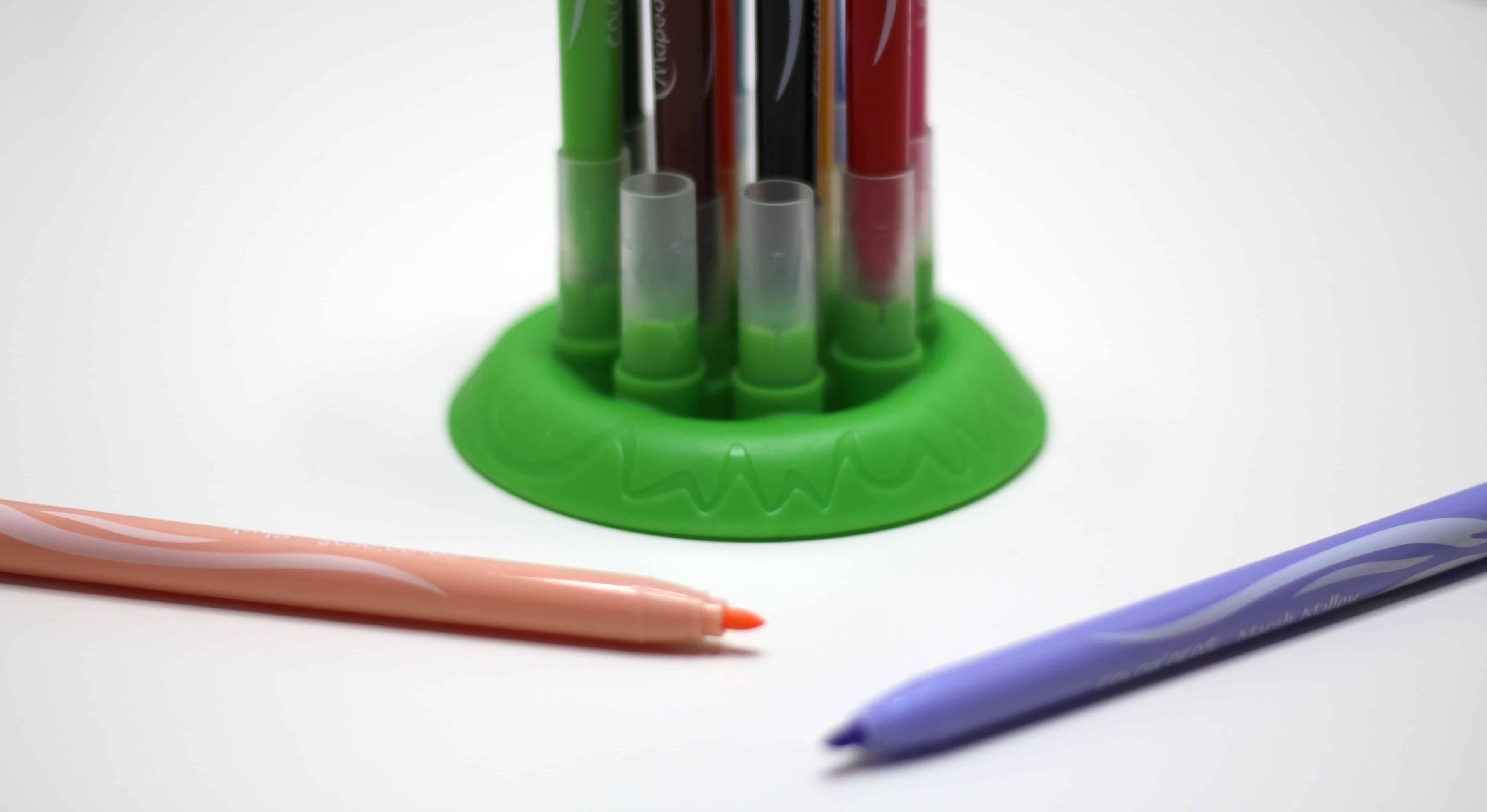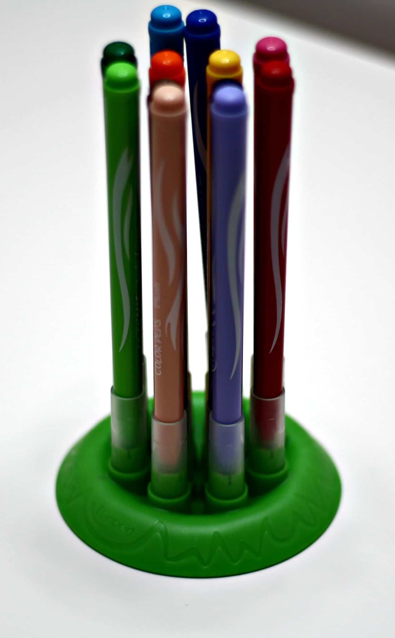 Do your kids lose the lid of felt pens? I am forever finding pens that have no lids and have dried up never to be used again! This clever invention from Maped Helix solves that issue! It sits on a table neatly and is compact enough to fit in a pencil case and take on the go.