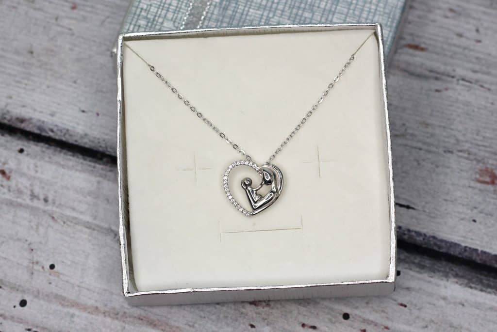 This sterling silver, rhodium plated, delicate necklace sums up exactly what motherhood is. This necklace can be easily worn with any outfit and has a subtle elegance about it. It truly is a well-made and thoughtful gift!