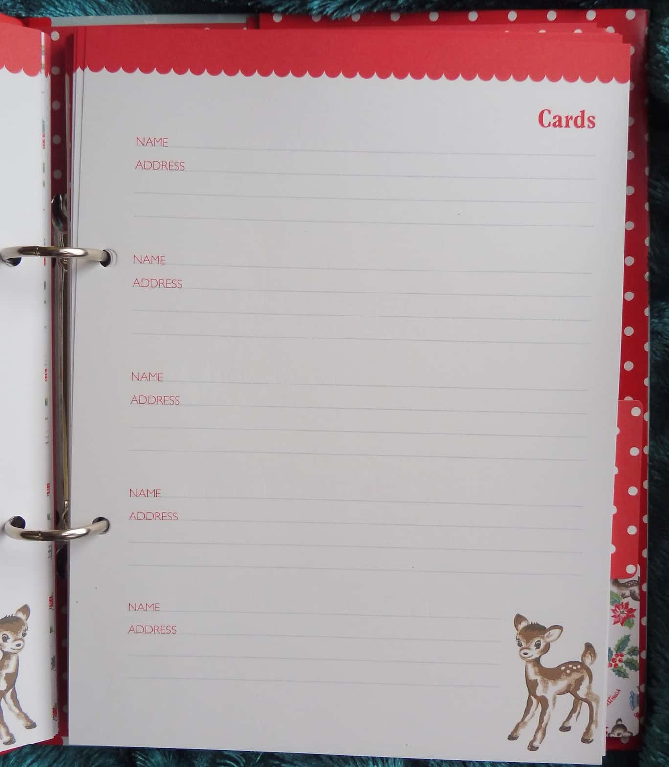 The Cath Kidston Organiser is a small ring binder which does mean you can add your own additional pages with a hole punch if you wish. There are some lovely Cath Kidston Christmas print tab seperators which are a lovely addition. At the back there is also some cute Cath Kidston Christmas Stickers.